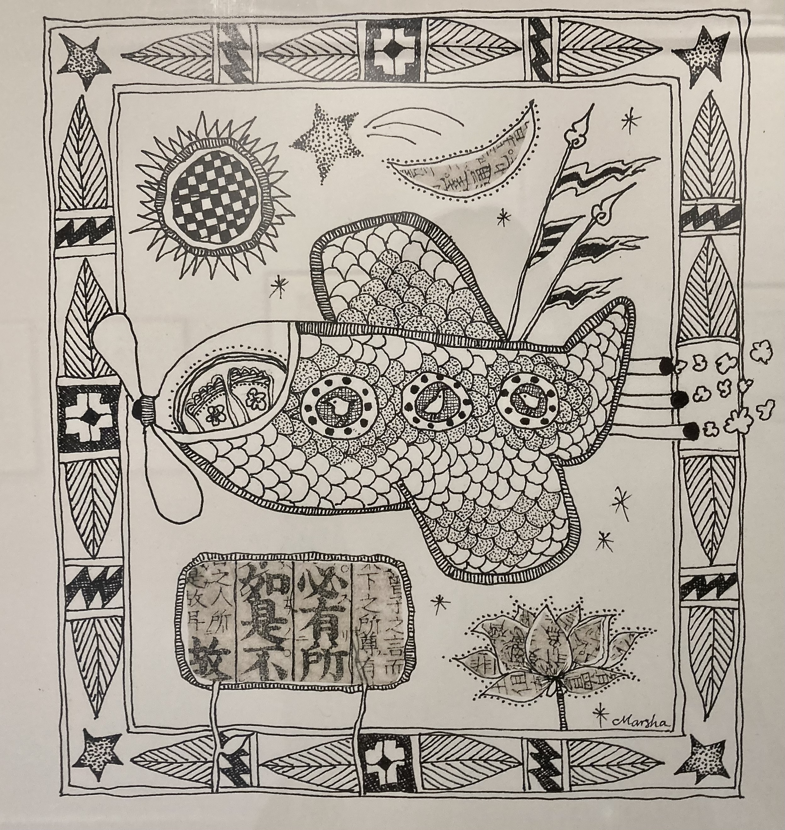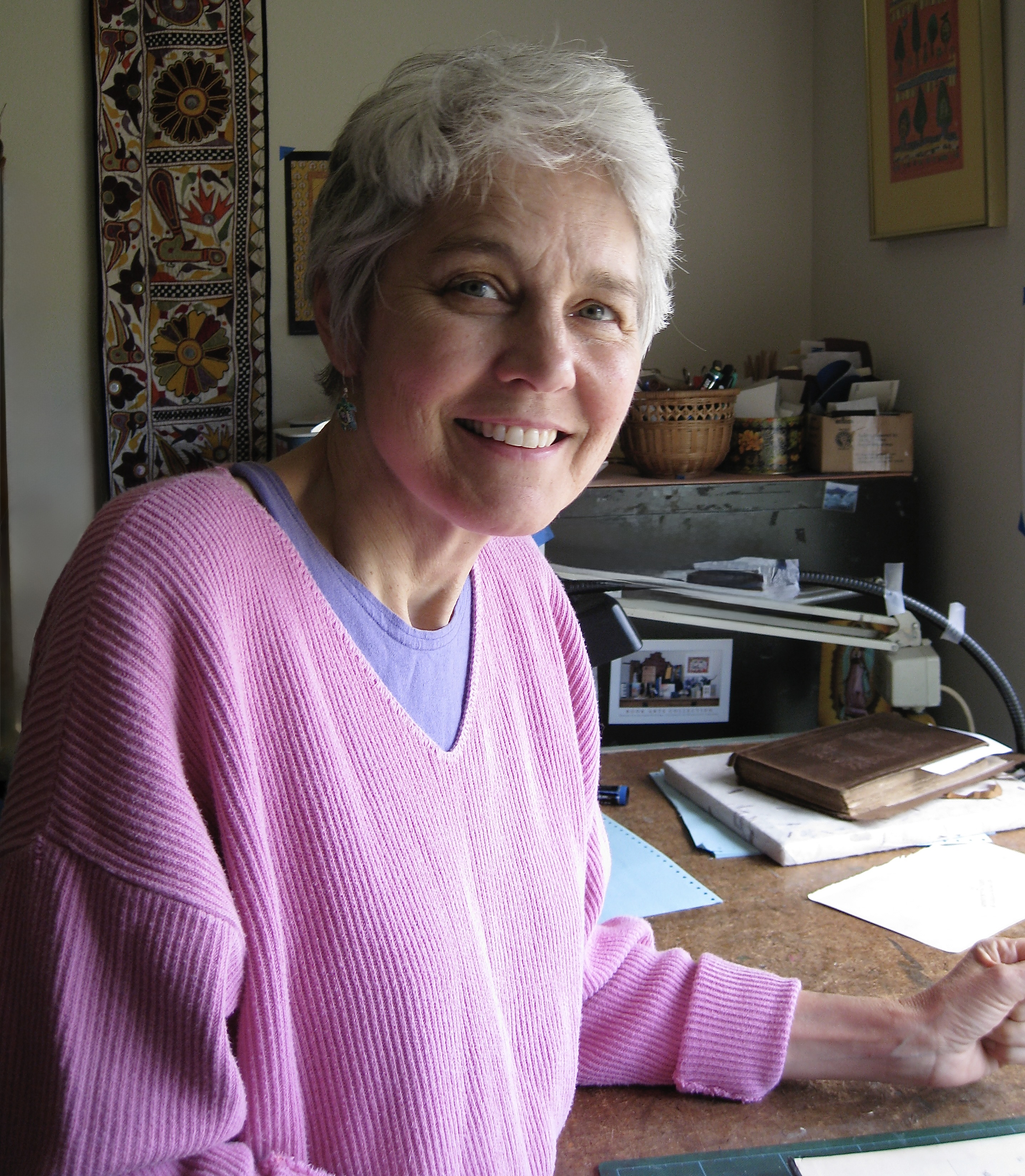 Marsha Hollingsworth has dedicated her life to creative expression in diverse mediums. Her artistic talents, appreciation of Nature, and intuitive sense of color and light have resulted in the body of work seen in these web pages. Follow the menu above to view her diverse styles, from her Meditations, influenced by miniature paintings of ancient Asian artists, to bold, colorful Flora From Afar. Many of Marsha’s pieces are collages, combining her talents as a painter with the fine papers she used in her bookbinding business. Her collages range from whimsical to the sublime.
